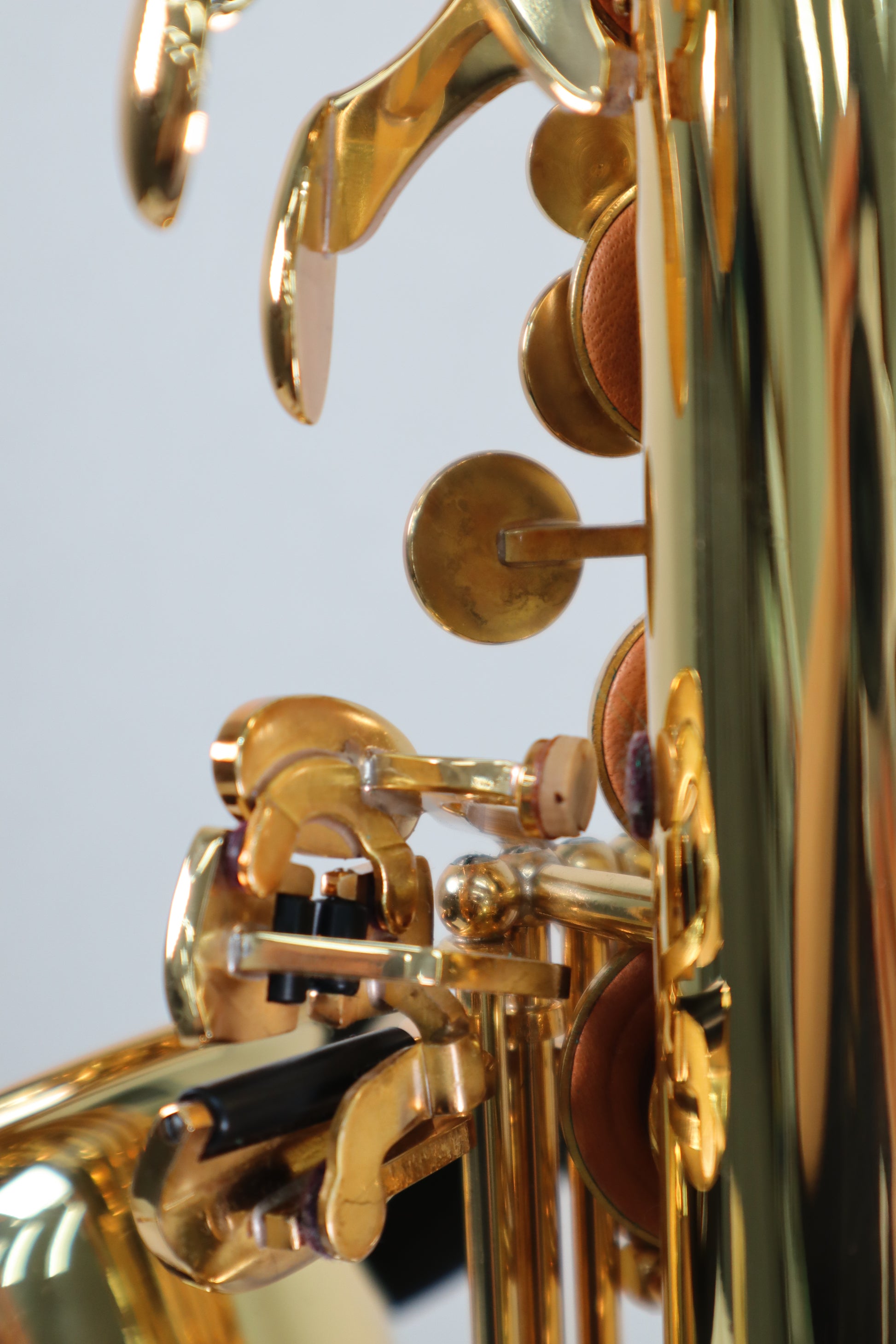 The pads show signs of use, but there are no cracks in the pads or corks on the body or neck.