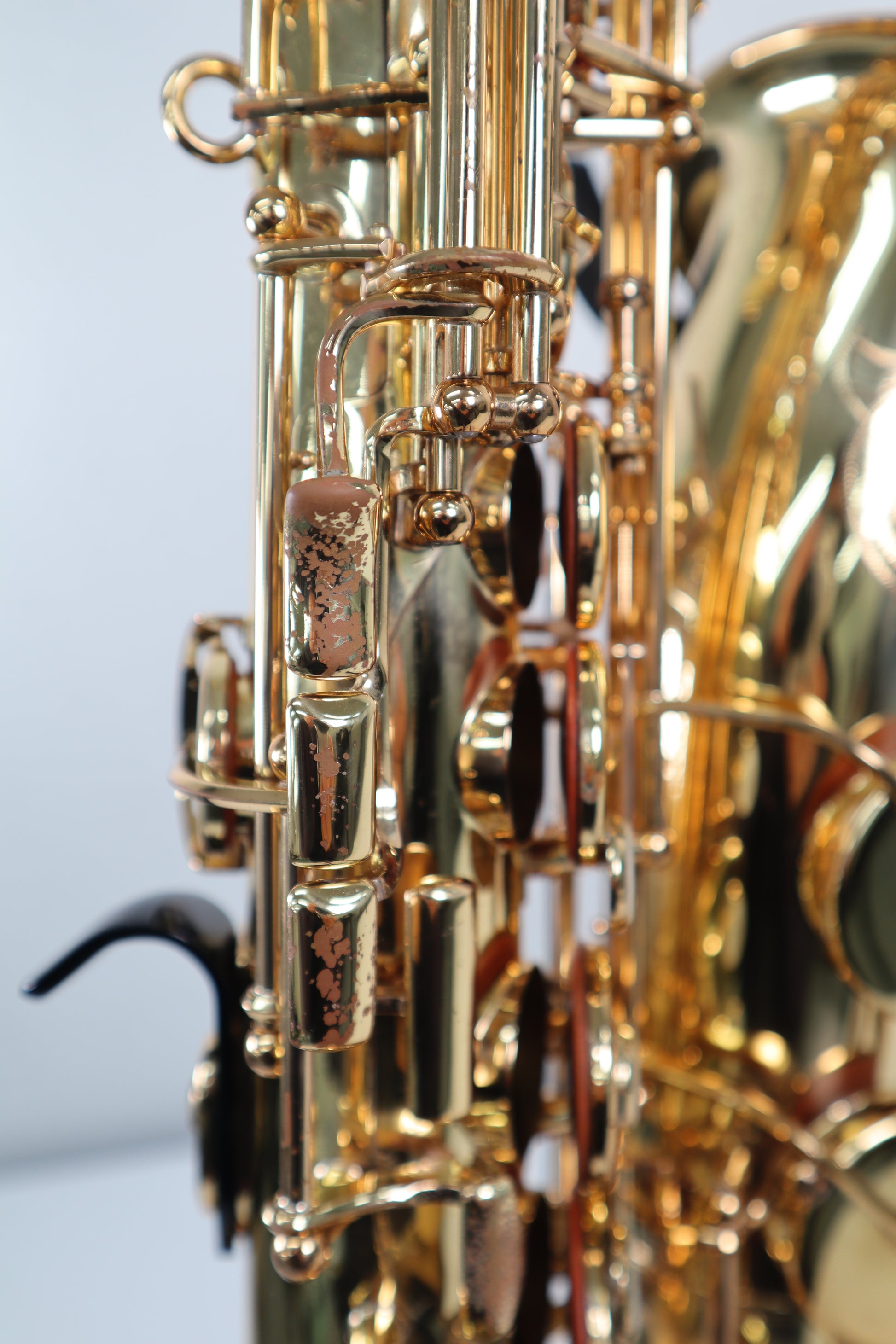 Condition is Great. There are no dents. The pads and corks on both the neck and body are intact with no cracks, and the octave key functions properly.