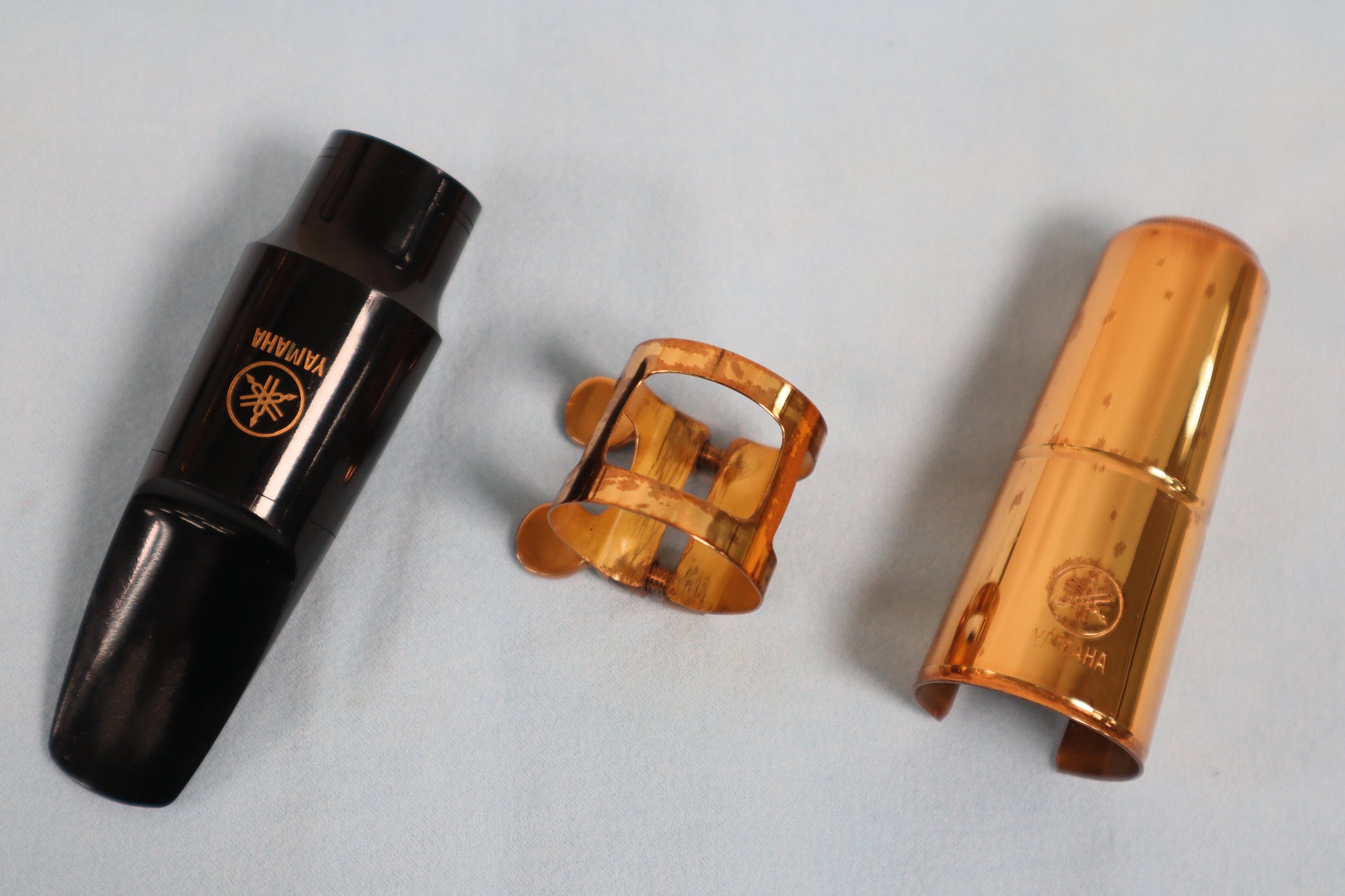 A YAMAHA 4C mouthpiece is included and shows bite marks.