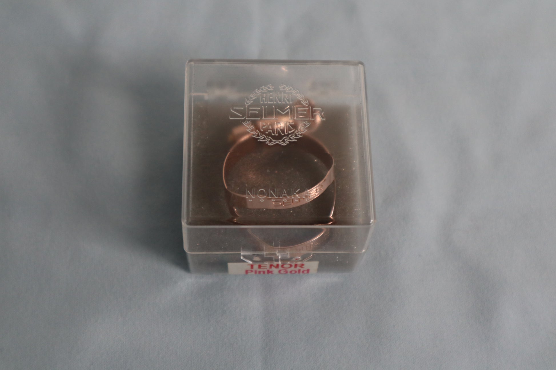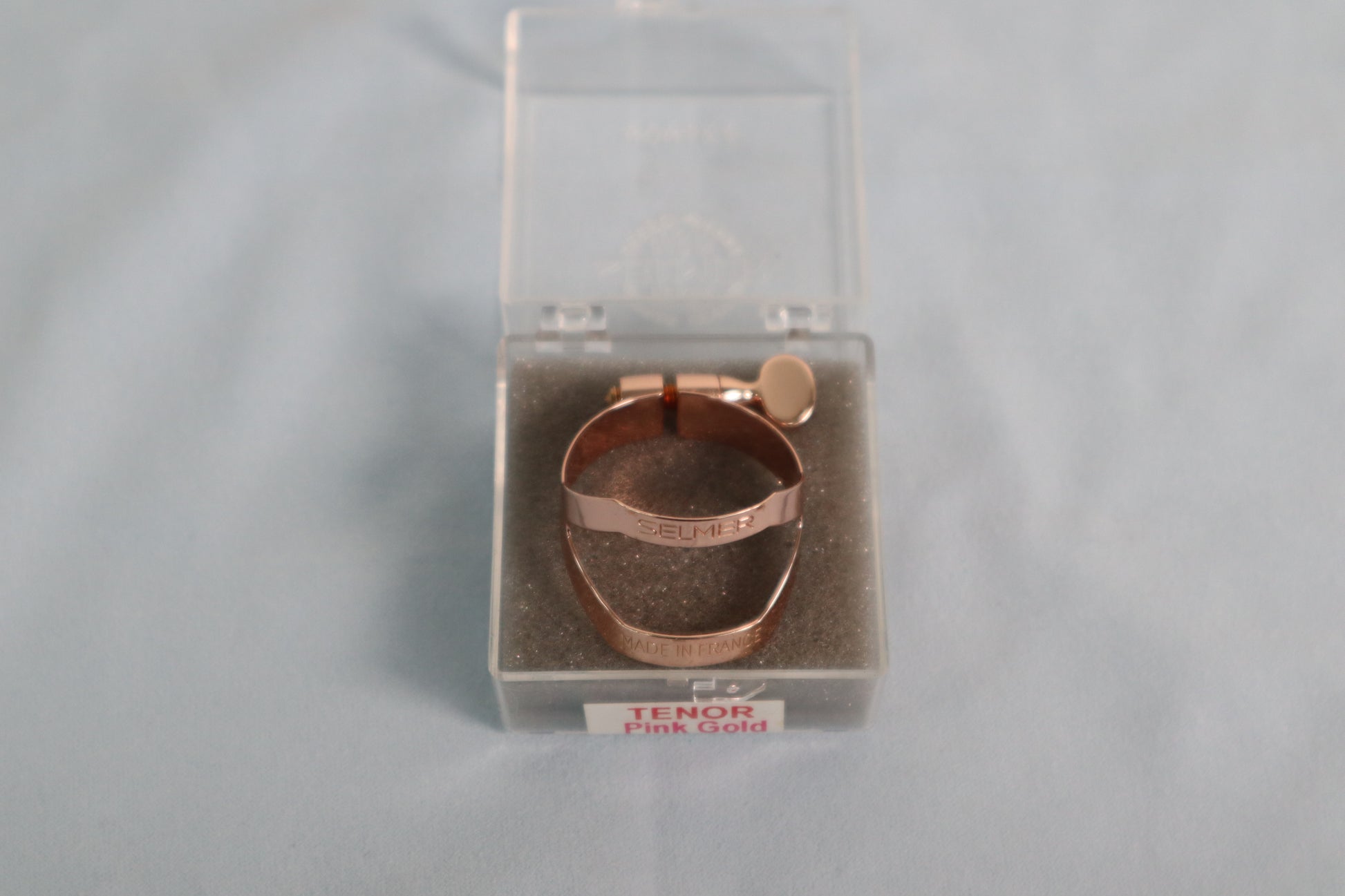 A SELMER ligature with a pink gold finish is included. The ligature is in very clean condition.