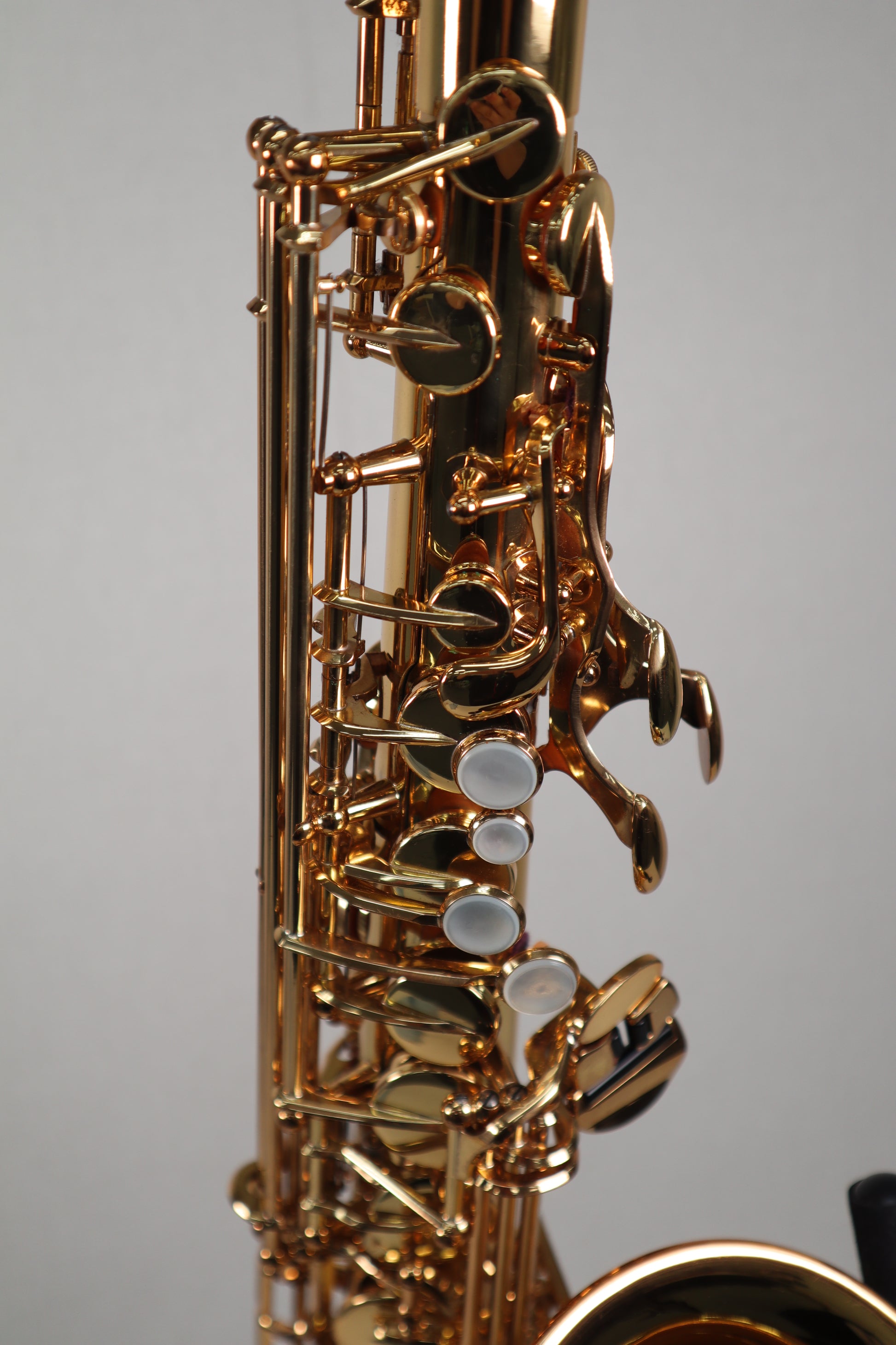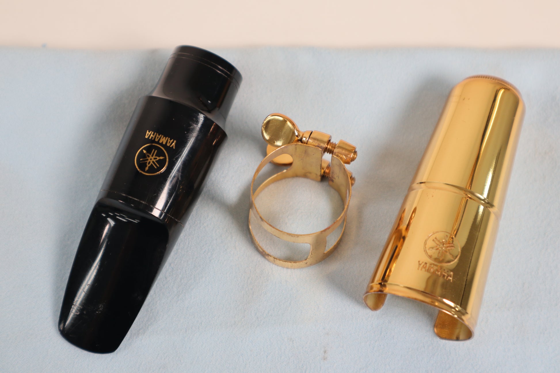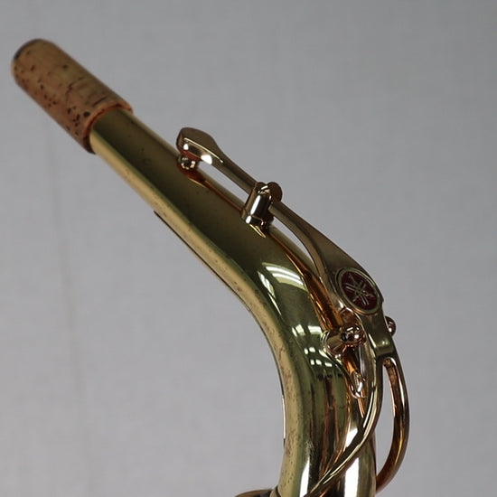 Condition is Excellent. The pads and corks are clean with no cracks and show minimal signs of use. There are no dents. There is some discoloration that looks like lacquer wear on parts of the body and neck, and a noticeable scratch on the U-bow; otherwise, overall scratches are limited. A YAMAHA 4C mouthpiece is included and shows bite marks. Accessories include the original case with key. Please note that the serial number effectively reads as a “4-digit” number with leading zeros, which may appeal to those looking for an early-number Purple Logo era instrument. For more details, please see the photos.