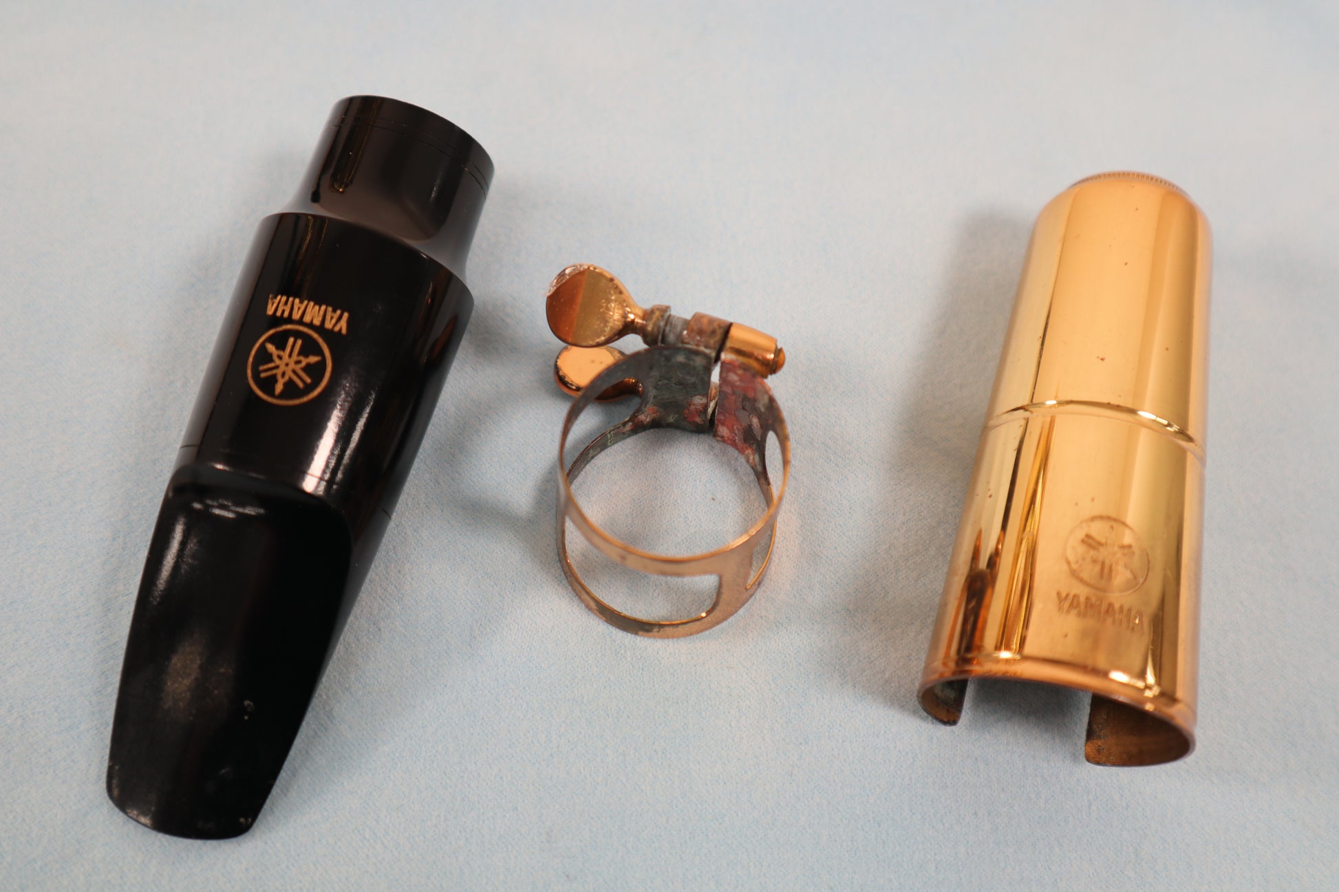 Condition is Great. Overall, it shows signs of use, but there are no cracks in the pads or corks on the body or neck, and there are no dents. There are multiple areas of discoloration and lacquer wear on the body. The YAMAHA round logo badge on the front of the neck is missing. There is also rust-like discoloration inside the bell—please refer to the photos for details. A YAMAHA 4C mouthpiece is included and shows bite marks. The ligature shows lacquer wear. Included is the original case with key. For more details, please see the photos.
