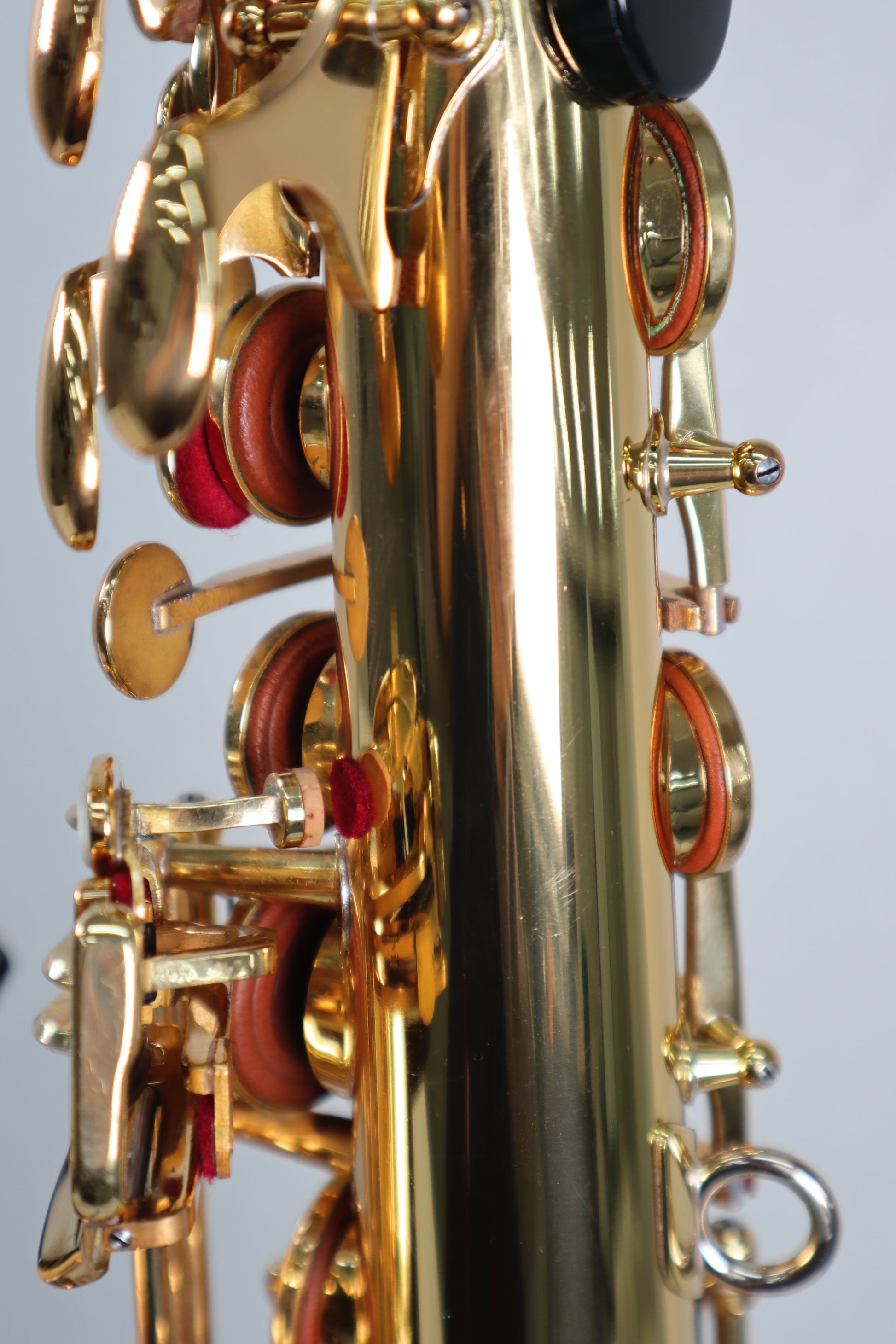 Condition is Excellent. The pads show some signs of use, but there are no cracks in the pads or corks, and the octave key functions properly. There are scratches and areas of lacquer wear from normal use, with more noticeable marks on the side of the G1 custom neck and the side of the body; however, there are no dents.