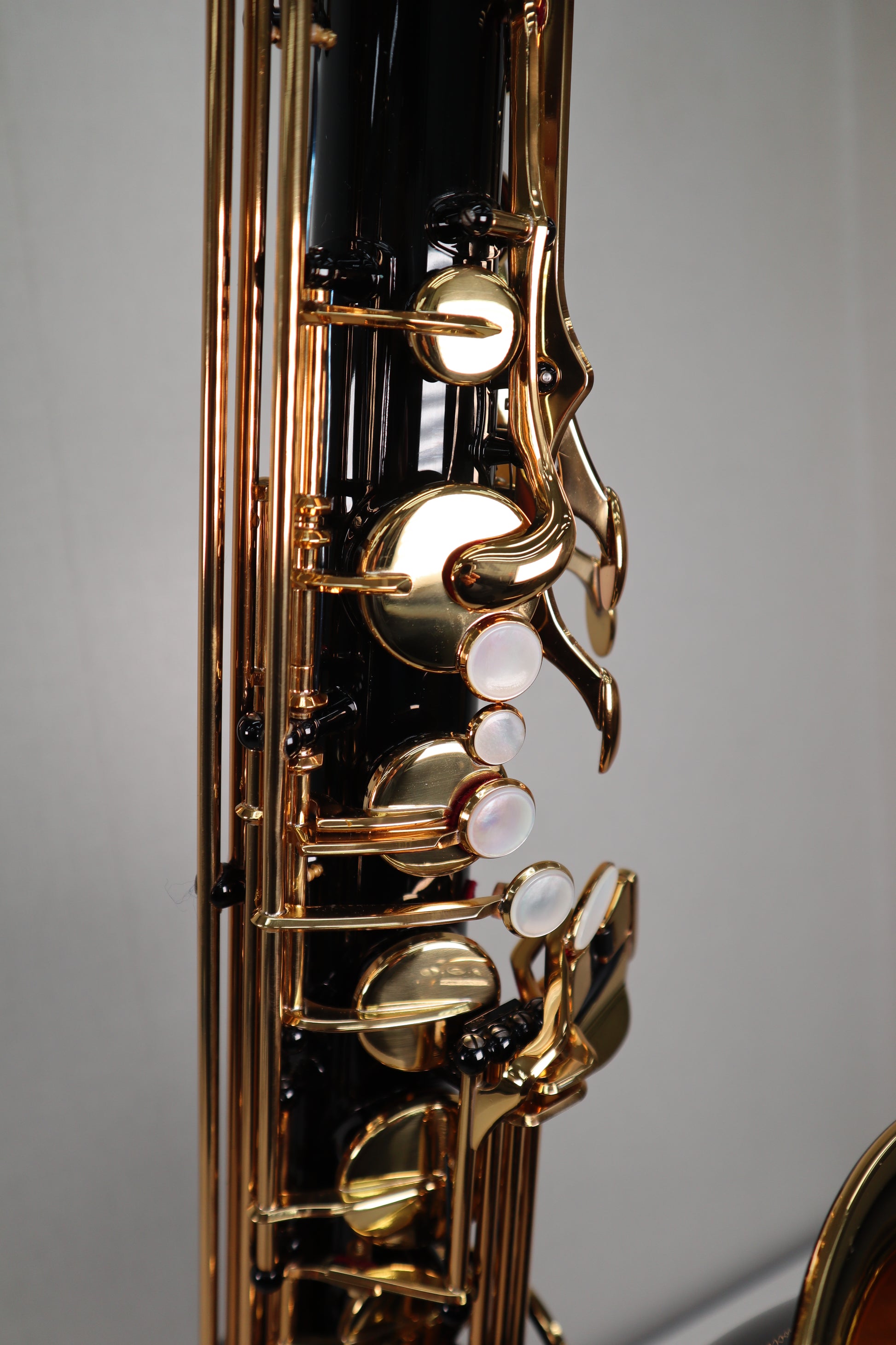 Condition is Excellent. It shows minimal signs of use and is clean overall, with no cracks in the corks/pads on the body or G1 neck. There are a few small marks from normal use, but it remains in good condition, and no black lacquer loss is visible. There are no dents. A YAMAHA Custom 4CM mouthpiece is included. Accessories include the original case with key. For more details, please see the photos.