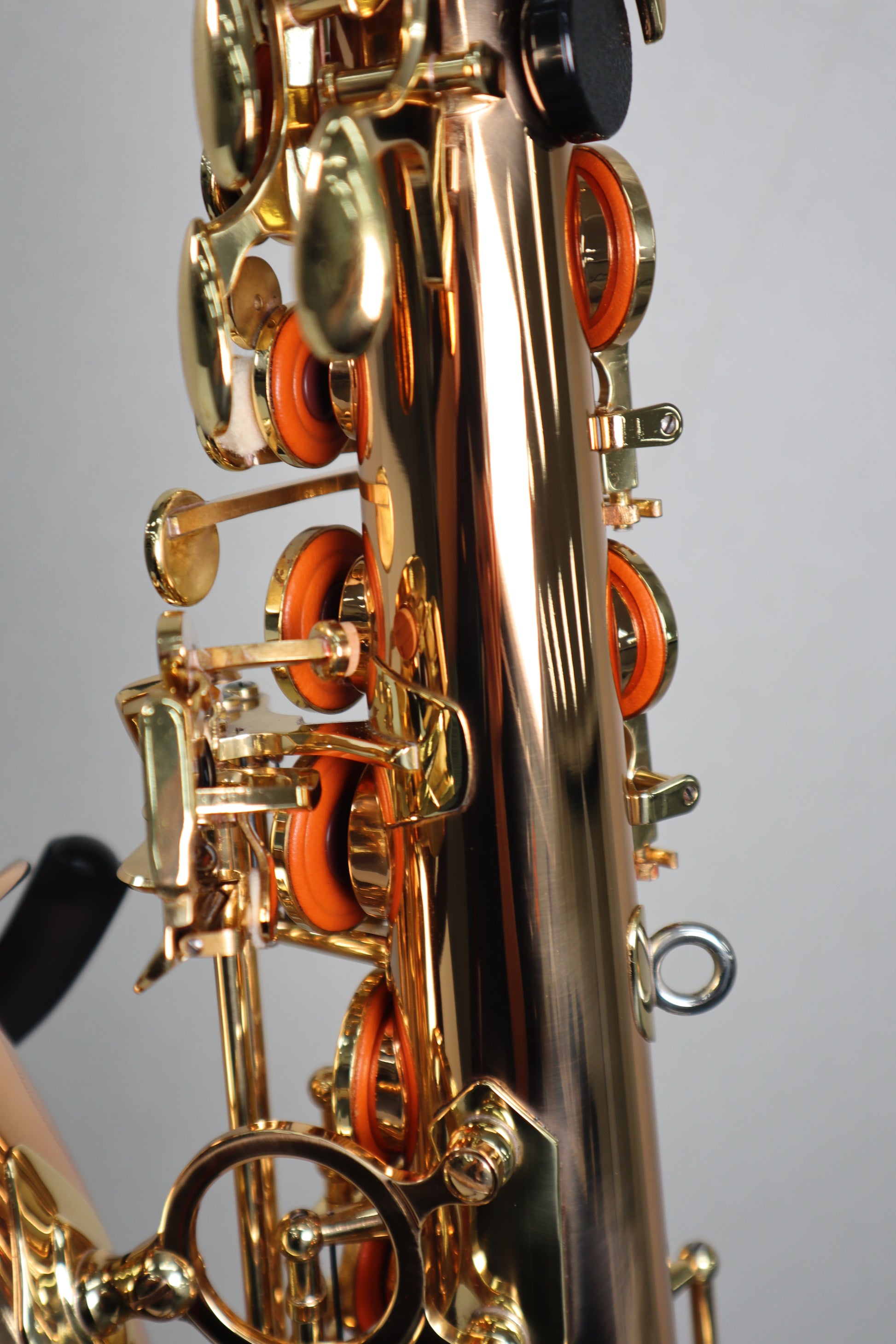 The Yanagisawa A-902 Prima is a professional-level bronze-brass alto saxophone known for its rich, warm tone and excellent response across all registers. With a gold lacquer finish and hand-engraved bell, it offers both visual beauty and superior playability. This model is suitable for advanced students and professional players seeking depth of sound and expressive flexibility.