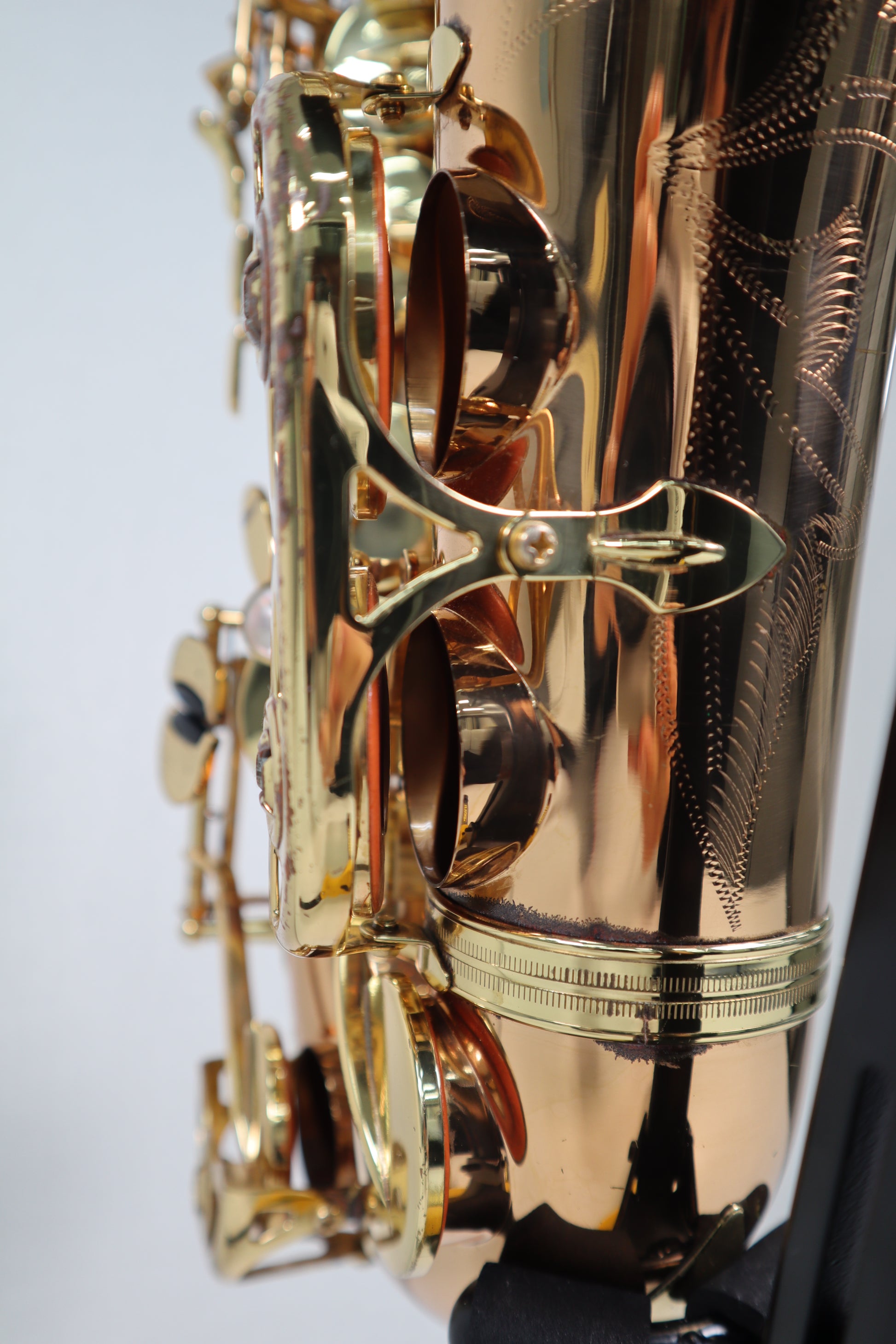 Condition is Excellent. The instrument shows overall signs of use, but there are no cracks in the pads or corks, and the octave key functions properly. There are scratches throughout the instrument, with noticeable lacquer wear on the body, neck, and ligature. In particular, there is prominent lacquer wear around the neck cork area; however, there are no dents.