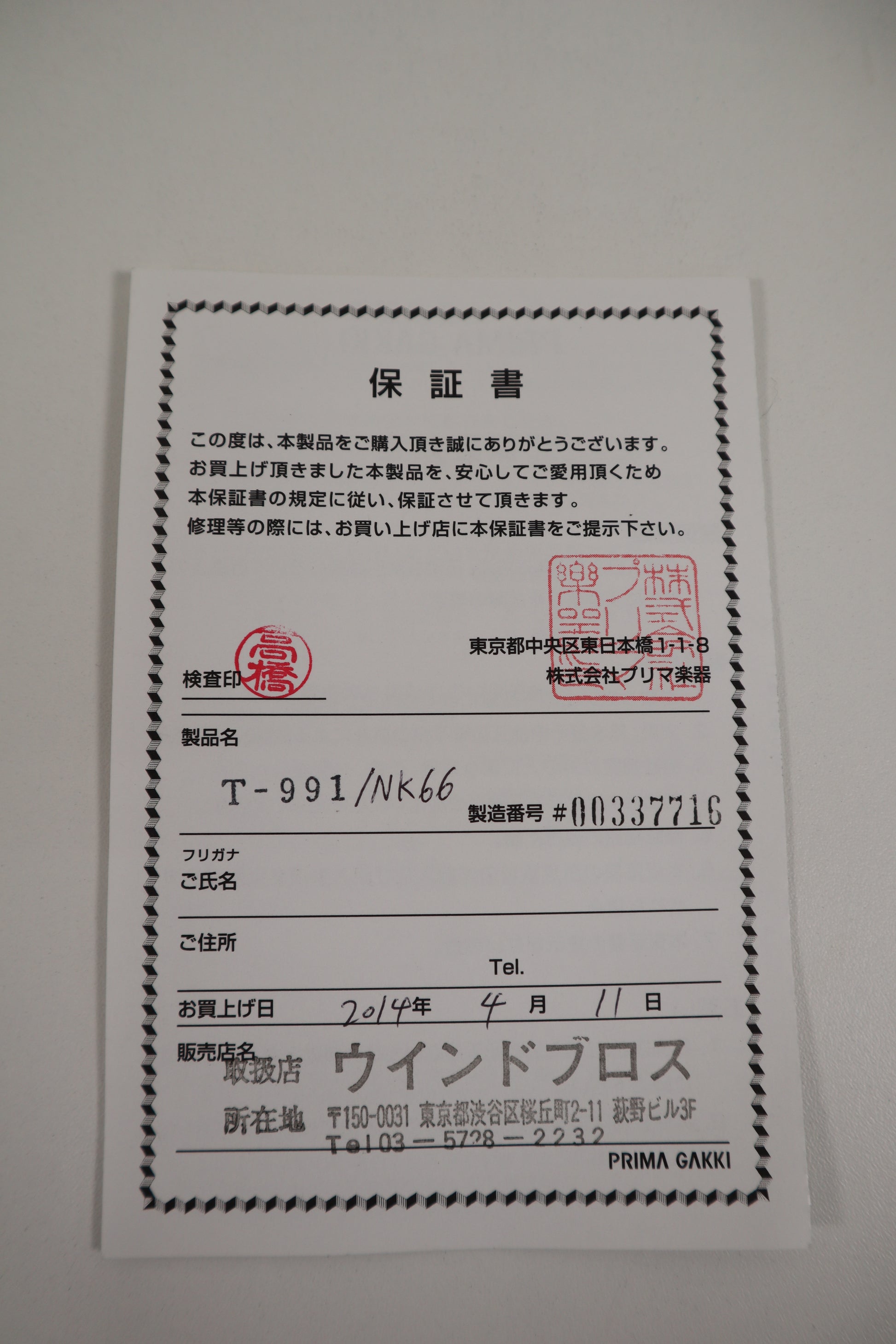 ・Proof of purchase from the music shop